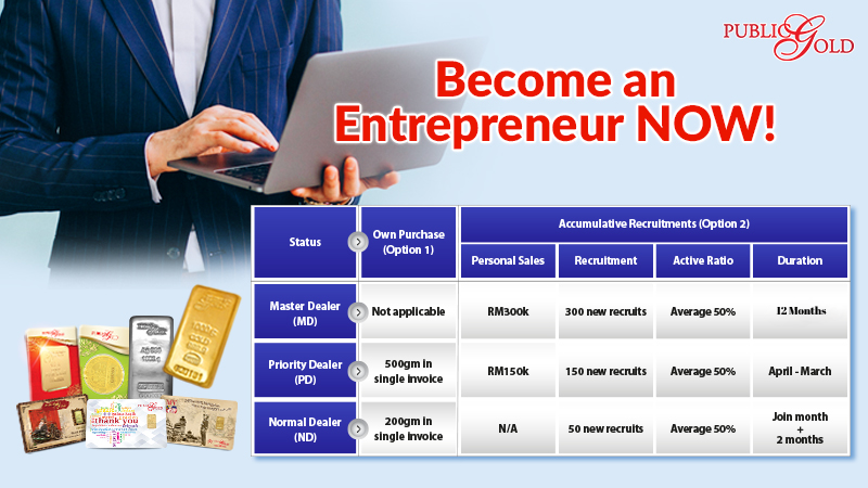 Sebagai Dealer Public Gold, anda akan mendapat banyak faedah daripada syarikat Public Gold yang telah kukuh di Malaysia.